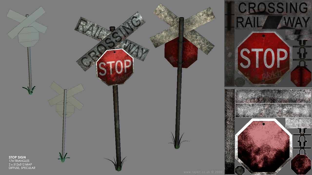Here’s a quick low poly model of a railway stop sign done as an exercise, all the textures were made from scratch.